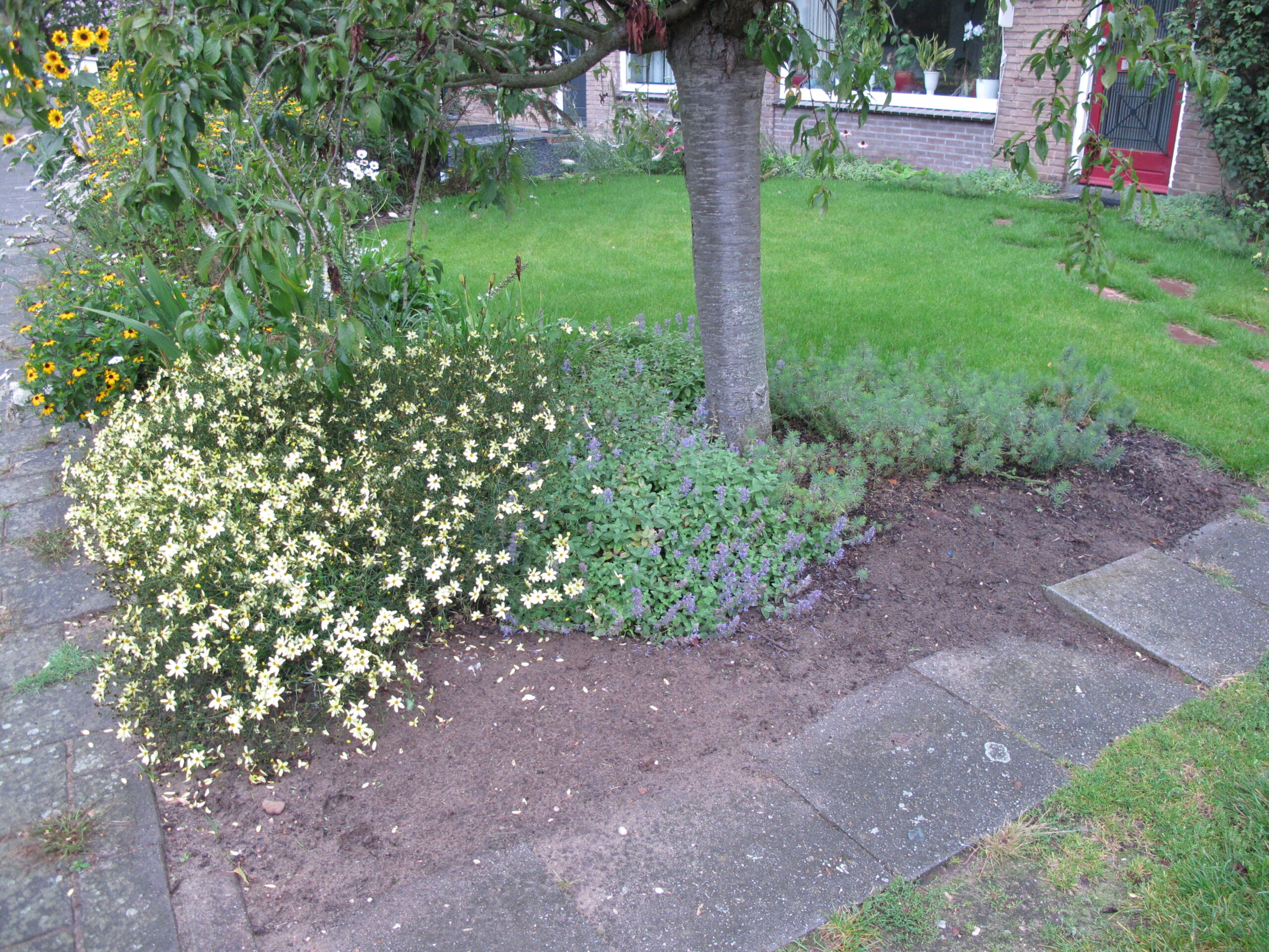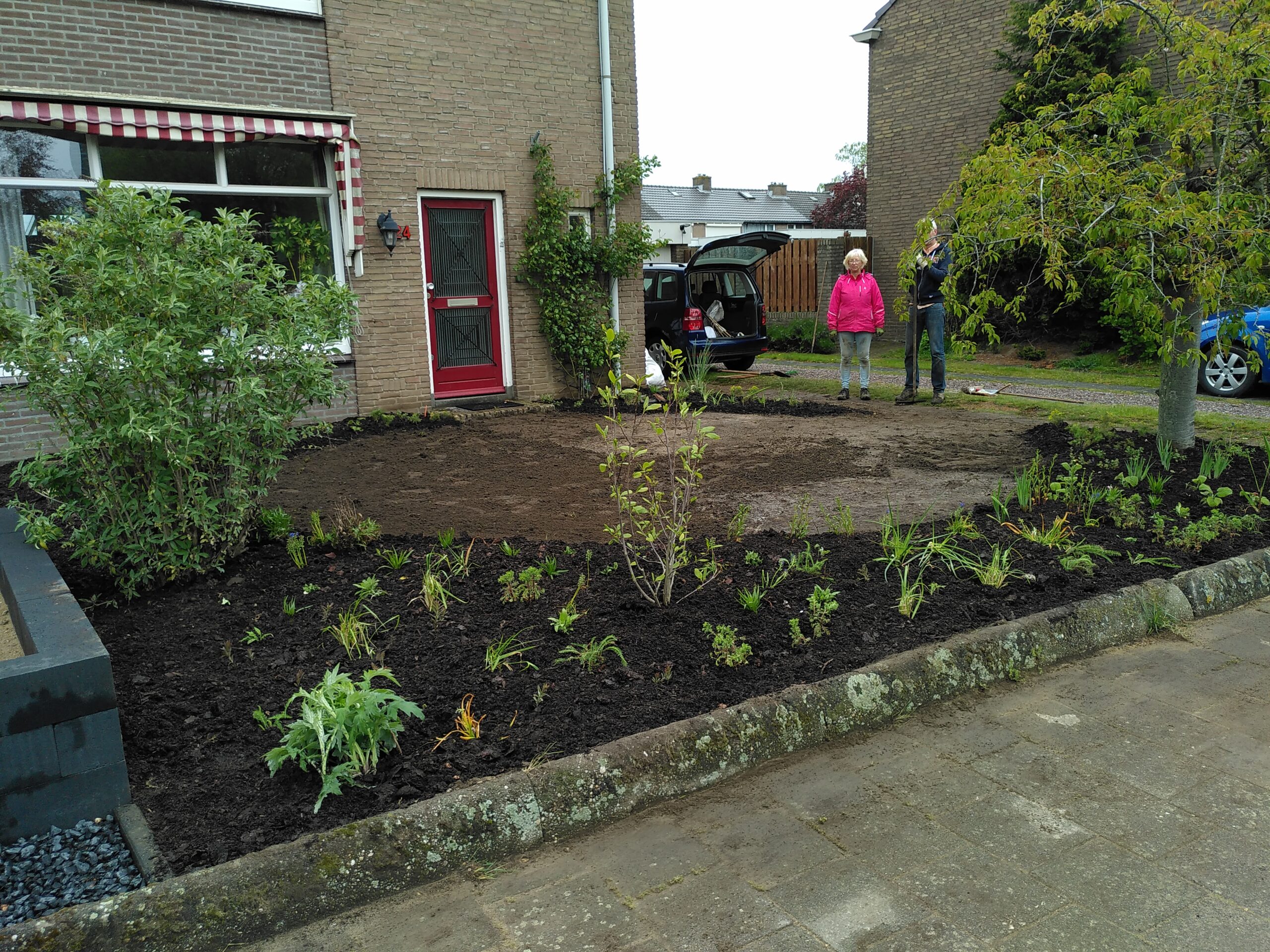 Deze voortuin had meer mos dan planten. Het was tijd voor actie om deze mooie ruime voortuin om te toveren tot een mooie fleurige plek!