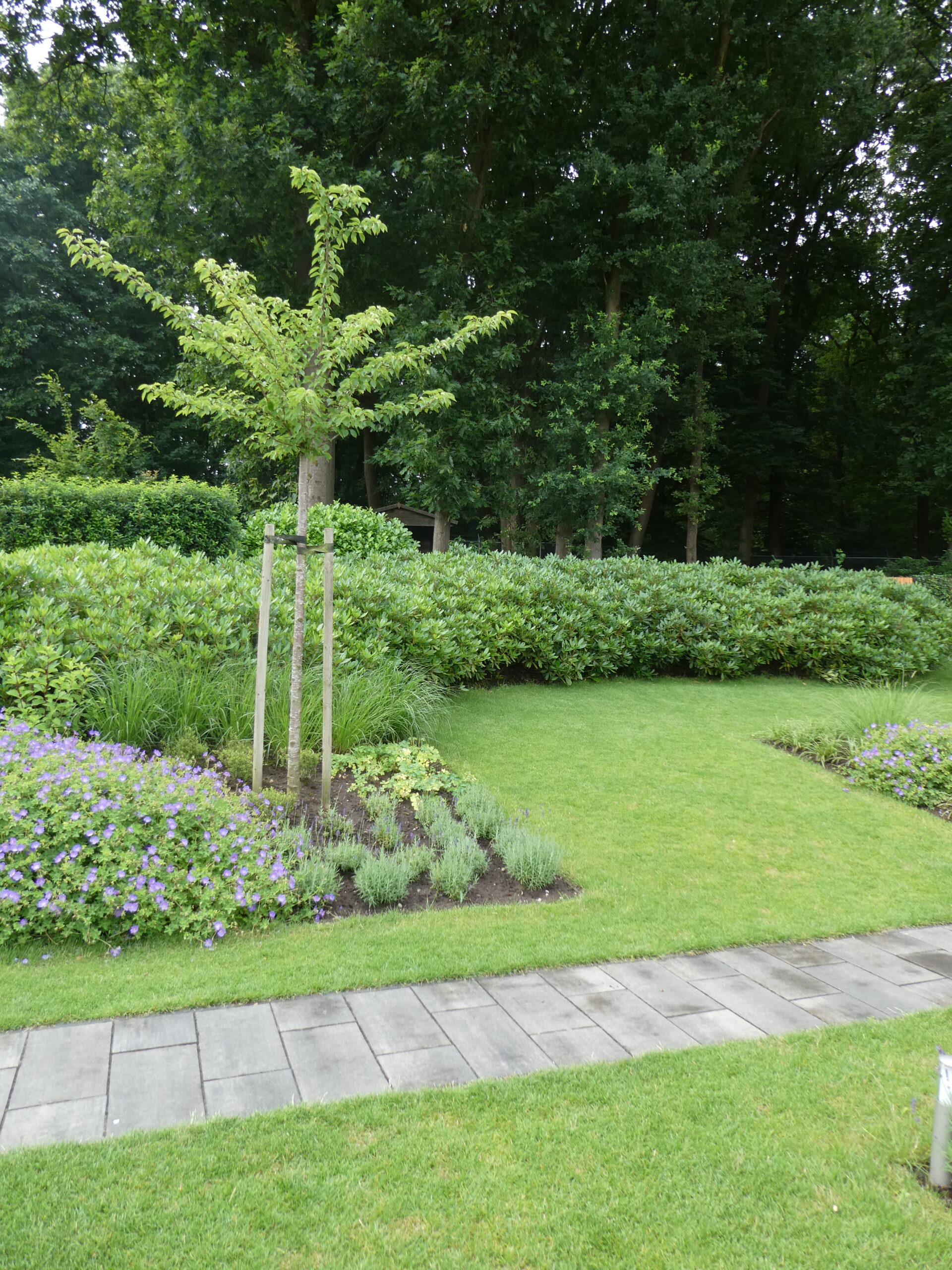 Het oorspronkelijke ontwerp is uiteindelijk grotendeels uitgevoerd zoals bedoeld, waarbij de lijnen, beplanting en functies samenkomen in een evenwichtige, uitnodigende tuin.